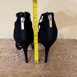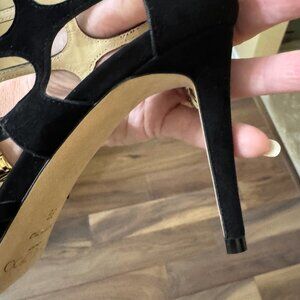 Beautiful black suede, approx 3-3.5 inch heels, strappy sandals. These have been worn one time, indoors only.