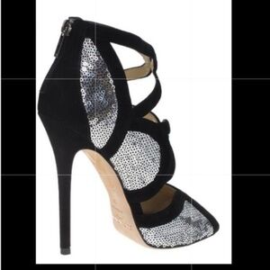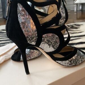 Sequins silver black shoes amazing look and stunning shoes for any occasions-cocktail parties. Brand New! JIMMY CHOO London ! Regular 39 1/2 please refer to Jimmy Choo shoe size chart on their official website - usually They go size to size for M foot with regular width. Woman shoes black silver 100% Authentic