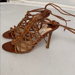 Jimmy Choo cognac tan brown strappy heeled sandals 37