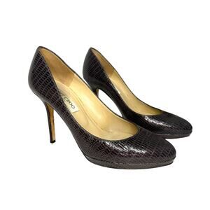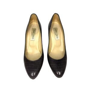 Jimmy Choo croc embossed round toe pump brown heels size 37