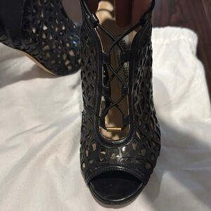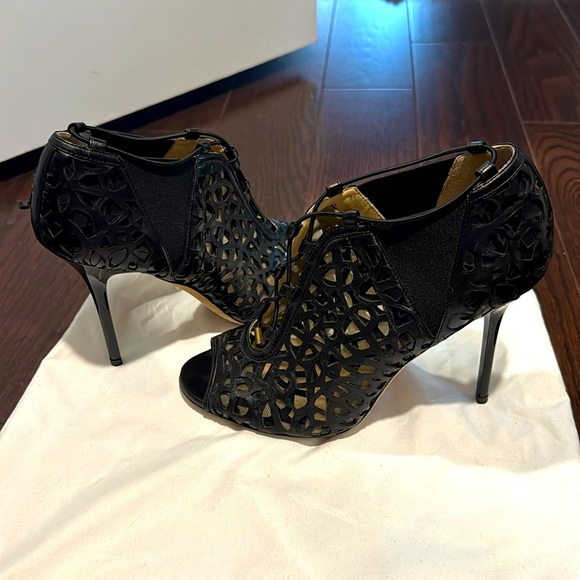 Jimmy Choo laser cut booties. 4” heel. Extremely comfortable. Gently worn