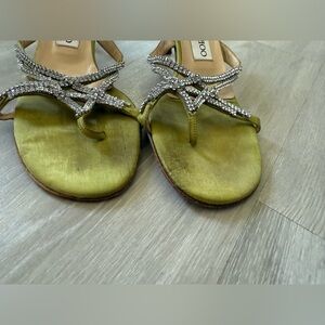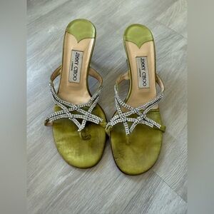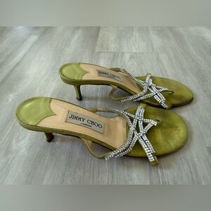 Jimmy Choo lime green Rhinestone Satin Sandals low heel sz 37.5