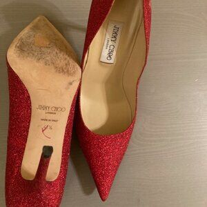 Jimmy Choo ruby red sparkle pumps, size 41.5