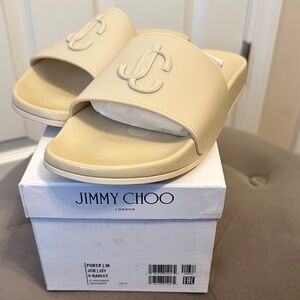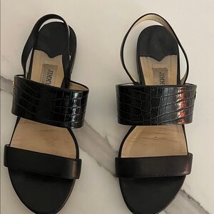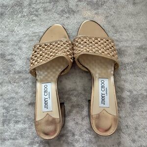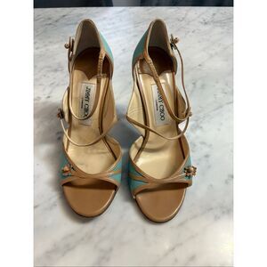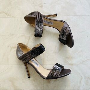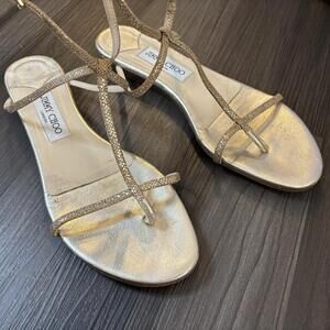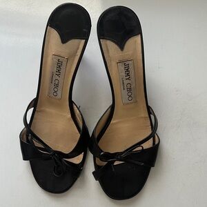 Jimmy Choo, size 7 (EU 37.5) Dark Brown Leather Silk Thong Sandals. Gently preloved in good condition.