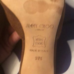 Jimmy Choo 100% authentic kitten heel sandals with gold hardware… These were purchased approximately 10 years ago in London I do not have the receipt or a box. They were more worn maybe three times. Beautiful shoe in excellent condition