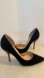 Jimmy Choo suede black pumps. These classic pumps feature a pointed toe and a slim heel. With a metallic finish on the back of the heel. Leather sole and lining. Only wore 2x times good condition.