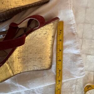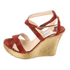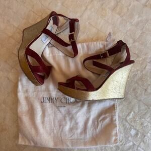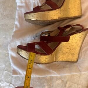 Jimmy Choo suede wedges sandals strappy red leather shoes sz 40 comfortable 8.5