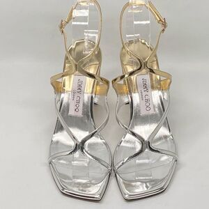 Jimmy Choo Azie 85MM Metallic Leather Sandals size 37