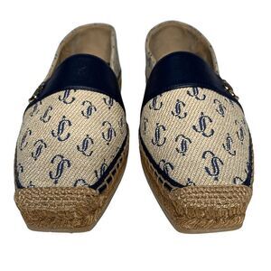 Jimmy Choo Dru Logo-Print Espadrilles EU 36.5 Monogram Jacquard Canvas/Leather Falts