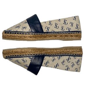 Jimmy Choo Dru Logo-Print Espadrilles EU 36.5 Monogram Canvas/Leather Flats
