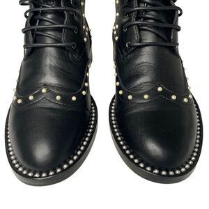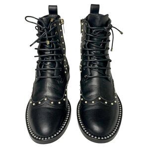Jimmy Choo Hannah Faux Pearl-embellished Leather Motto Combat Ankle Boot EU 36.5