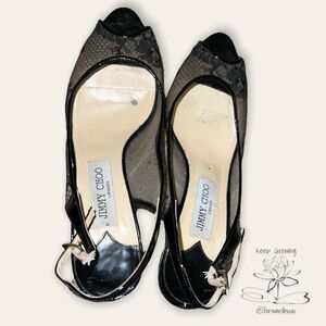 This is a listing for a pair of used size 39 (sizing does not line up on all sellers platforms Jimmy Choo high heel shoes. These have a narrow toe box and are adorable peep toes.