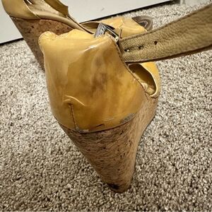 Jimmy Choo Pela Patent Cork Wedges in Nude/Tan Size EU 37