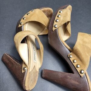 Jimmy Choo Pink Suede Wooden Clog Slide Sandal Size 8 Good Condition See Pictures For More Details.