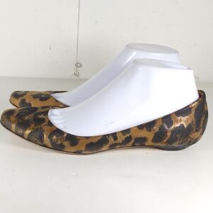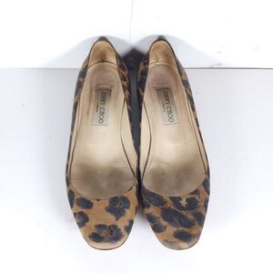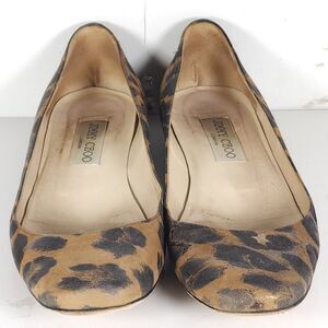 Jimmy Choo Women's US6,5-7 EU37,5 Leather Leopard Print Brown SlipOn Flat Shoes