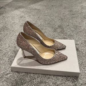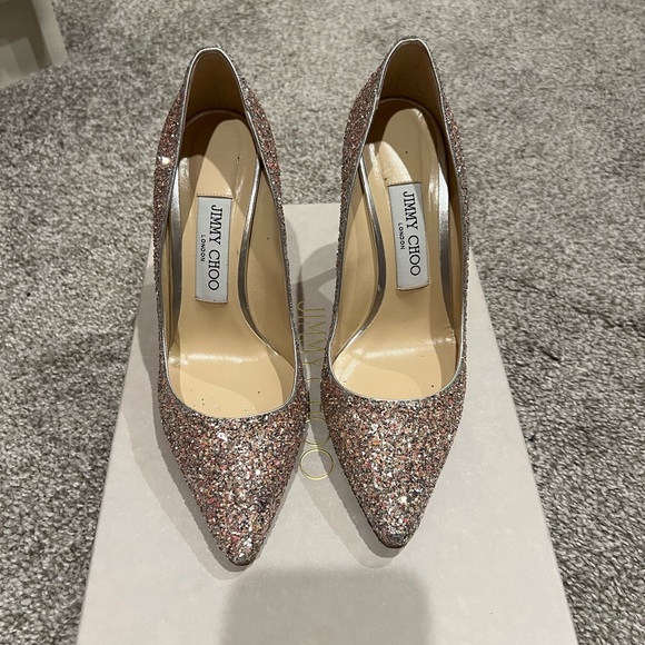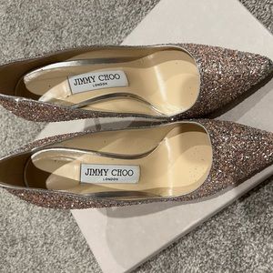 Authentic Jimmy Choo’s Romy Heel. Only worn once for a few hours during wedding. Beautiful sparkly shoes in great condition.
