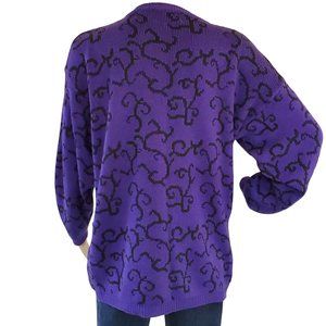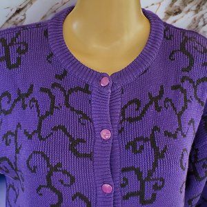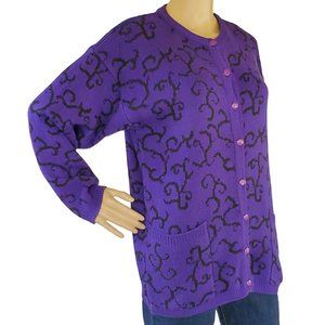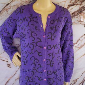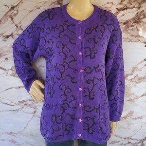 Jimmy Garcia Cardigan Sweater Women's M Purple Black Long Sleeve Button Acrylic