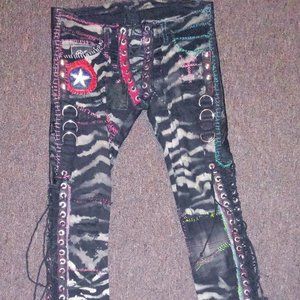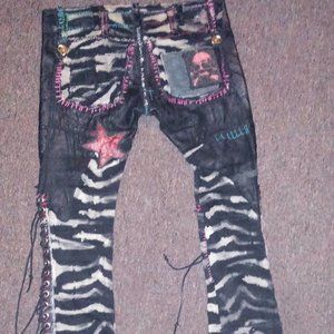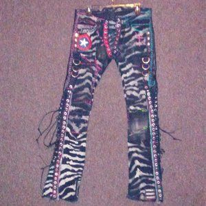 (Jimmy Webb's)Agatha Blois/NYC Custom Leather Pants..Jimmy Webb was know throughout the celebrity world to dress & style everyone from you and me to Slash,Alice Cooper,Duff Mckagan,Blondie,Etc.He was Manager of Trash & Vaudeville,and Then opened his own store I NEED MORE..All in N.Y.C.He recently passed away,and was well known as the nicest guy you would ever meet..They dont make people like Jimmy..So R.I.P....Please do your research on Jimmy Webb,and u to can be touched by him as well!! Enjoy!!