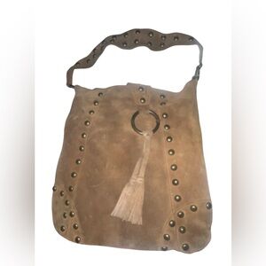 Jimmy Z Leather Brown Studded Hobo Bag with Tassel