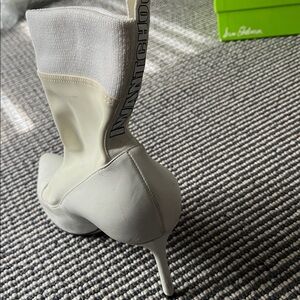 Stylish white pointed toe sock boots. Perfect for a chic look.