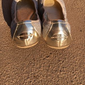 Silver/sparkles with gold tip toe and heel. Nearly new.