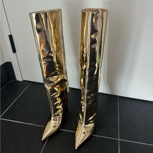 Worn twice jimmy choo gold boot. In like new condition. No external scratches