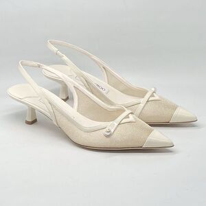 Jimmy Choo Amita Metallic Mesh & Patent Leather Slingback Pumps size 38.5