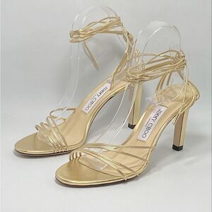 Jimmy Choo Antia Metallic Leather Ankle-Tie Sandals size 37.5
