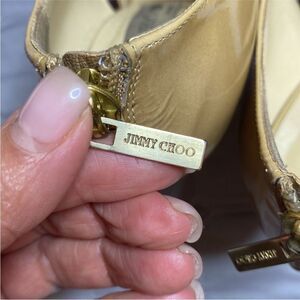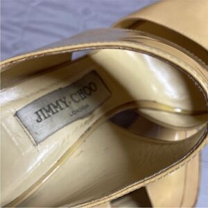 Jimmy Choo Elegant Tan Peep-Toe Heels, US7,5