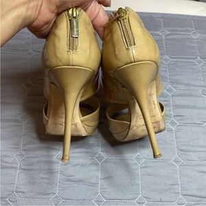 Step out in style with these elegant tan peep-toe heels. Perfect for any occasion, these shoes offer both comfort and sophistication. No bix, great condition