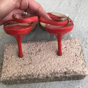 Super cute red Jimmy Choo.Please look at the pictures. They are not perfect but they are still good. Heel height is 3.5 inches