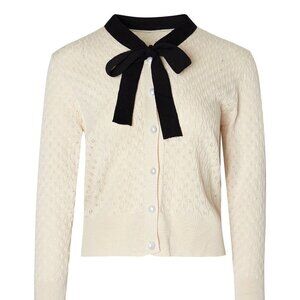 J.ing Ashtyn Beige Contrast Bow Tie Cardigan