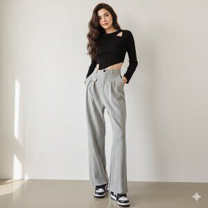 These slouchy pants feature high waistline and wide legged fit. Made of comfy polyester, cotton and spandex. Pair with sneakers for relaxing or going on a leisurely walk