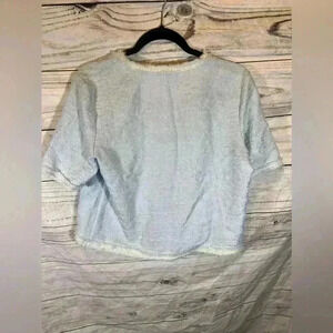 Elevate your wardrobe with this stylish J.ing Tweed Button Up Blue Top in size Small. The solid blue color, short sleeves, and crew neckline make it a versatile piece for any occasion. The top is made of a luxurious blend of polyester, polyamide, and viscose, while the tweed fabric type adds a touch of sophistication.