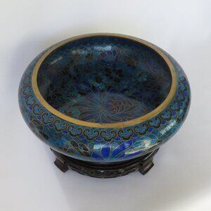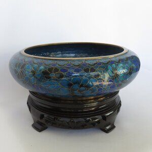 Jingfa Cloisonne Blue and Gold Floral Bowl and Stand Vintage Chinese........325