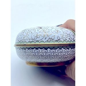 Jingfa Vintage enamel Cloisonne Trinket Box Painted Flowers + Labels