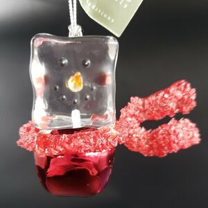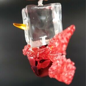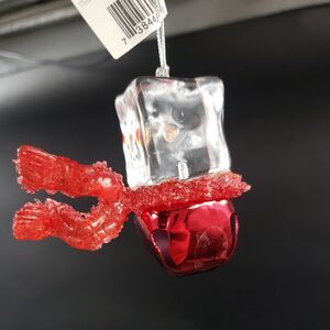 Vintage Seasons of Cannon Falls Clear Acrylic Ice Cube Snowman Red Scarf Ornament Jingle Bell.