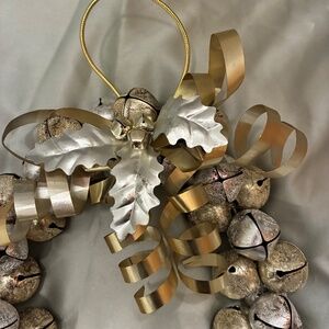 Jingle Bell Wreath Silver Gold Metal 9.5”x13.5” Drop VGUC