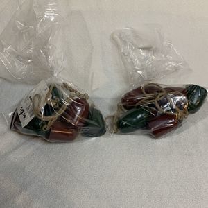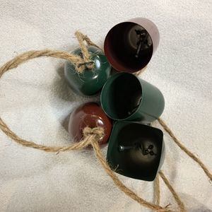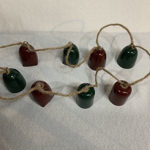 Jingle Bells Garland Christmas Holiday 2 Set Metal Green Maroon Rustic Jute New