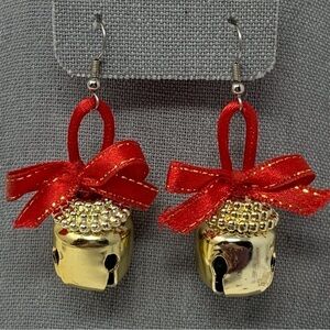 Jingle Bells Red and Gold Toned Dangle Earrings Christmas 🎄 Holidays