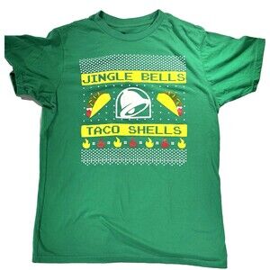 "Jingle Bells Taco Shells" Taco Bell Men's Green Christmas T-Shirt Size Large