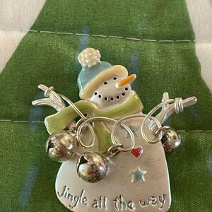 Jingle Snowman brooch in pretty silver and blue. Excellent condition.