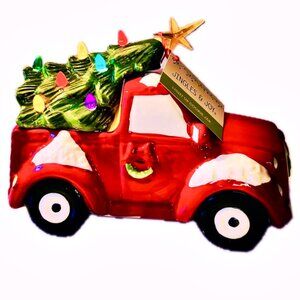 Jingles & Joy Christmas Cookie Jar Vintage Red Truck with LED Christmas Tree NWT
