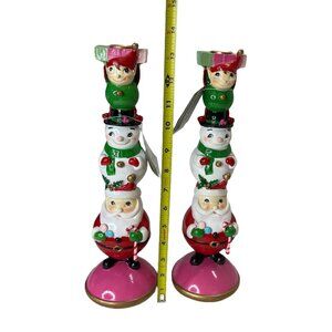 Jingles & Joy Elf Snowman Santa Christmas Candlestick Candle Holders Set Holiday
