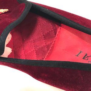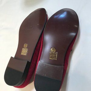 Jitai sz 9 1\2 velvet slip On loafer dress shoes red with gold crest studs