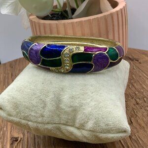 Jiu Long Xing Enamel Rhinestone Gold Tone Retro Stye Bangle Clamper Bracelet