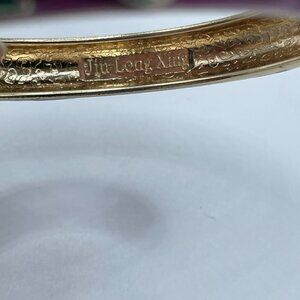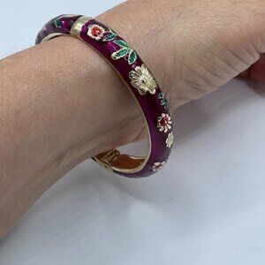 Jiu Long Xing Purple Enamel Floral Hinged Gold Tone Bangle Bracelet 2.25"