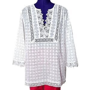 Absolutely gorgeous top has stain on one of the sleeves, which is not obvious to the eyes except on close inspection and will come off after one wash