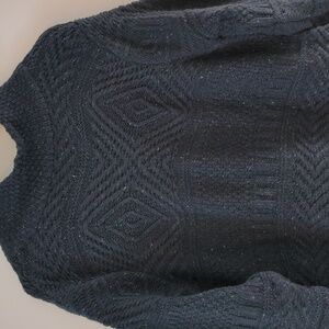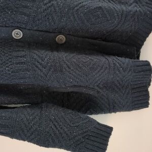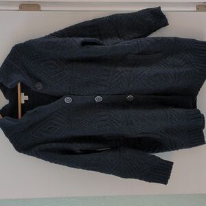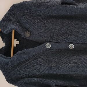 J.jill Cable Knit Chucky Navy Fisherman Style Side Pockets Wool Blend Cardigan L