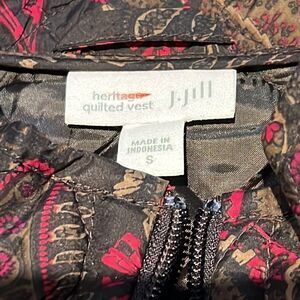 J. jill Heritage Quilted 2-Way Zip Front Vest Brown & Red Paisley Print